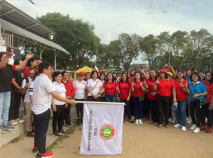 Kegiatan jalan sehat start dan finish di Lapangan Sparta Tikala ini, Walikota pilihan rakyat didampingi Kadis Diknas Kota Manado.